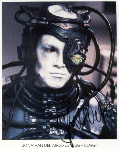 Lange bevor Jeri Ryan als “Seven Of Nine” als Borg wieder menschlich wurde, gelang dies Jonathan als HUGH (der Name beruht auf einem Mißverständnis innerhalb der Handlung) in einer Episode von STAR TREK: THE NEXT GENERATION. Als ich ihn 1996 in L.A. traf, tat er mir eher leid, denn sein Panel war von höchstens 20 Fans besucht. Leider interessierte ich mich auch nicht für ihn, weswegen ich mich auch nicht zu ihm gesellte, obwohl er ein sehr netter junger Mann zu sein schien. Aber seien wir mal ehrlich: Nur weil er einmal in einer ST-Folge mitgespielt hat und er seitdem nirgendwo mehr zu sehen war, macht ihn das noch lange nicht zu einem Massenmagnet, oder? Nichts für ungut, Jonathan! |