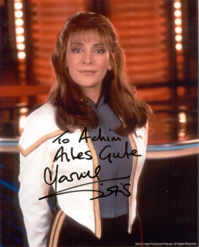 Als 1987 STAR TREK: THE NEXT GENERATION anlief, war ich ein wenig in „Counselor Deanna Troi“ verknallt. Ich sammelte fast alles von ihr - Fotos, Actionfiguren, Magazine… Höhepunkt wäre gewesen, wenn ich sie einmal persönlich getroffen hätte. Dies gelang mir jedoch erst 21 Jahre später! Sie hatte sich kaum verändert und sah immer noch blendend aus. All dies erzählte ich ihr auch an ihrem Signiertisch, wofür sie sich bedankte. Als es mal wieder um das Buchstabieren meines Vornamens ging, erzählte sie, sie wisse, wie man "Achim" schreibt, denn sie habe eine Freundin in Mannheim, die mit einem Achim verheiratet ist. Am letzten Tag erwischte ich sie zufällig in der Hotel-Lobby und sprach sie auf ein rasches Foto an, das sie mir auch gewährte, obwohl sie es sehr eilig hatte, irgendwo hinzukommen. Danach wurde sie noch von einigen anderen Fans für ein Foto gestoppt, was sie bei keinem ablehnte. Auf ihren Panels bewies sie eine energische aber auch witzige Persönlichkeit. Sie spielt wohl gerne die "tough actress", doch während ihrer Dankesrede an die Fans während der Closing Ceremony musste sie doch ein wenig weinen.