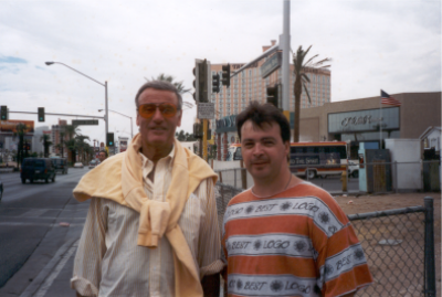 Richard Anderson wurde weltberühmt als OSCAR GOLDMAN in der Serie THE SIX MILLION DOLLAR MAN und THE BIONIC WOMAN. Zudem gab er im Pilotfilm zu KNIGHT RIDER als DR. RALPH WESLEY Michael Long sein neues Gesicht als Michael Knight. Er ist der einzige Schauspieler, den ich rein zufällig getroffen habe. Zu verdanken habe ich diese Begegnung meiner damaligen Freundin Nadine, die ihn in einem Schuhgeschäft in Las Vegas erkannt hatte. Nachdem ich ihm eine Weile hinterher gelaufen war, fand ich den Mut, ihn anzusprechen. Er meinte nur: „Yes, I am, I am!“. Dann fragte er uns, woher wir kamen, woraufhin ich ihm Saarbrücken in der Nähe von Frankfurt nannte. Frankfurt kannte er. Ich gab mich als THE SIX MILLION DOLLAR MAN-Fan zu erkennen, woraufhin er mir einiges über die geplante Fortsetzung der Serie auf dem Sci-Fi-Cannel erzählte (die leider nie zustande kam). Einer der freundlichsten Schauspieler, die ich je getroffen habe. | |